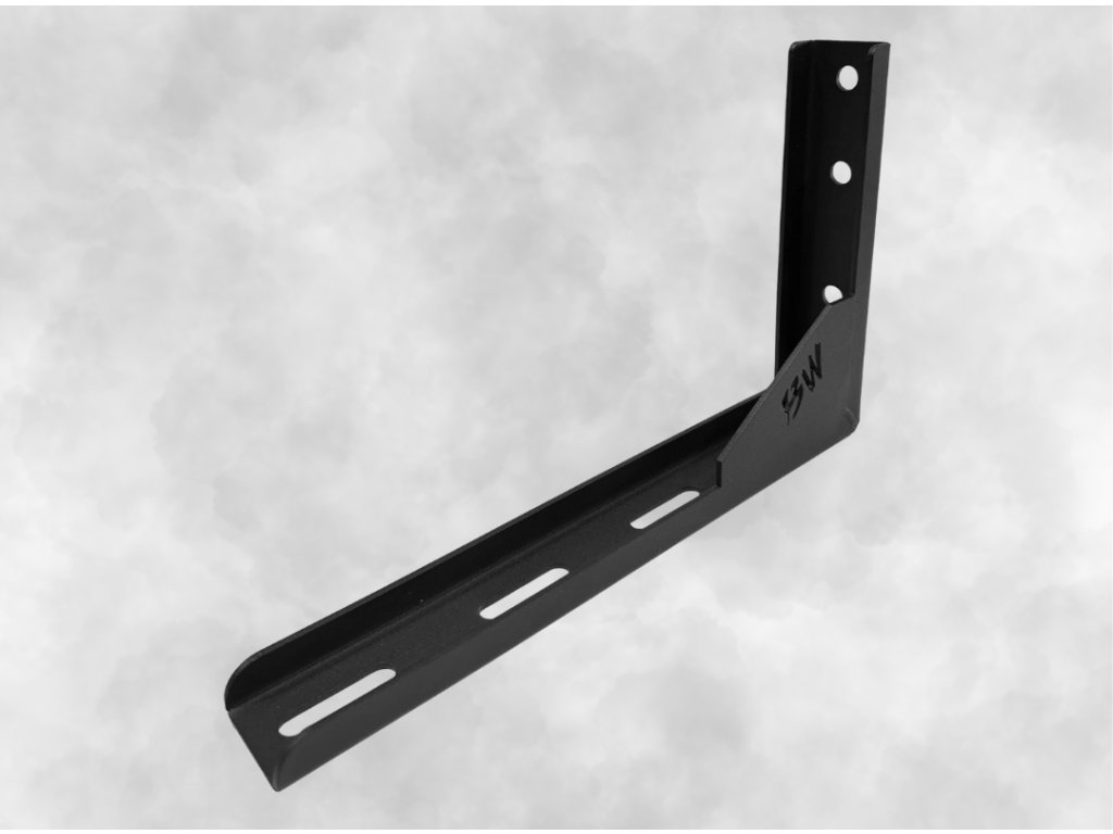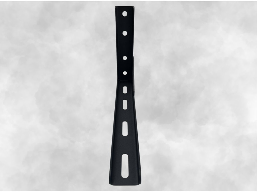 Standardní L-držák je navržen pro maximální pevnost a stabilitu při uchycení markýz Bushwakka Extreme Range. Díky L-tvaru s výztuží poskytuje spolehlivou podporu a bezpečné upevnění na vozidlo nebo jinou montážní platformu.