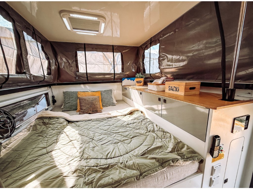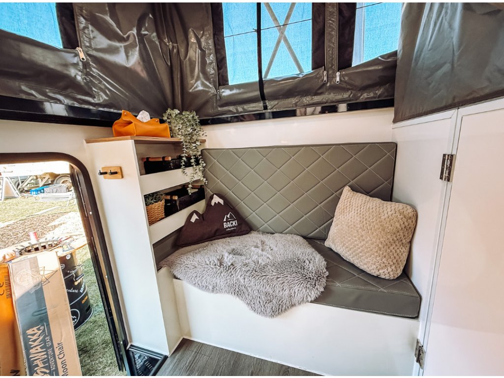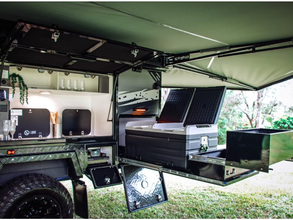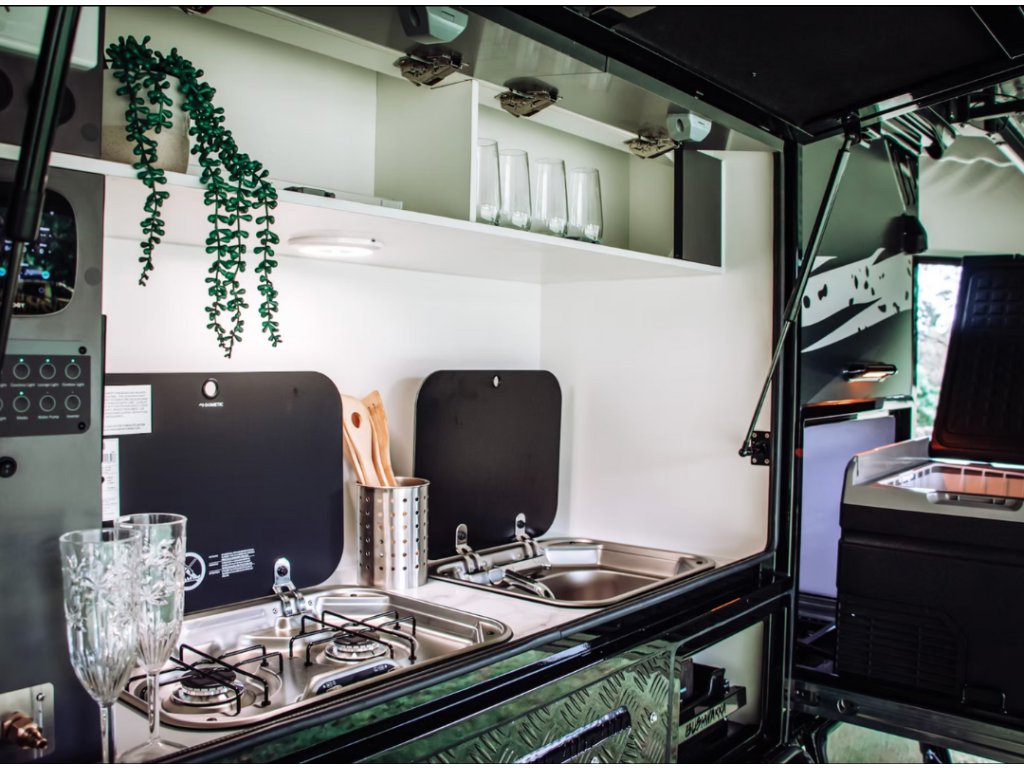 Je to australský styl cestování, kde se vše důležité odehrává venku. Plnohodnotná venkovní kuchyně, sprchový kout s teplou vodou a velká, samonosná markýza Bushwakka The Meg ti poskytnou zázemí, které využiješ naplno za slunce, deště i v divočině. Karavan je postavený pro náročný terén – s robustním podvozkem, chytrým systémem napájení a praktickými úložnými řešeními. Celý koncept je o svobodě, jednoduchosti a pohodě. Cíl je jasný: být co nejvíc venku, žít naplno a nezávisle.