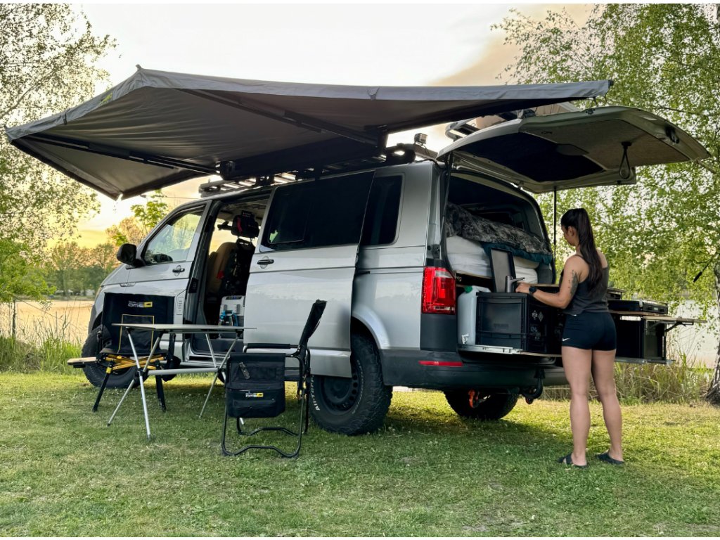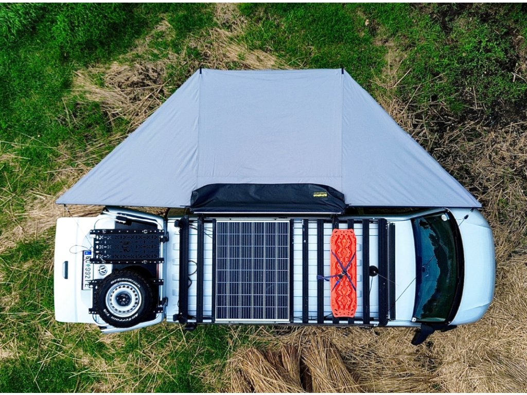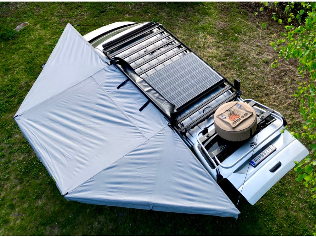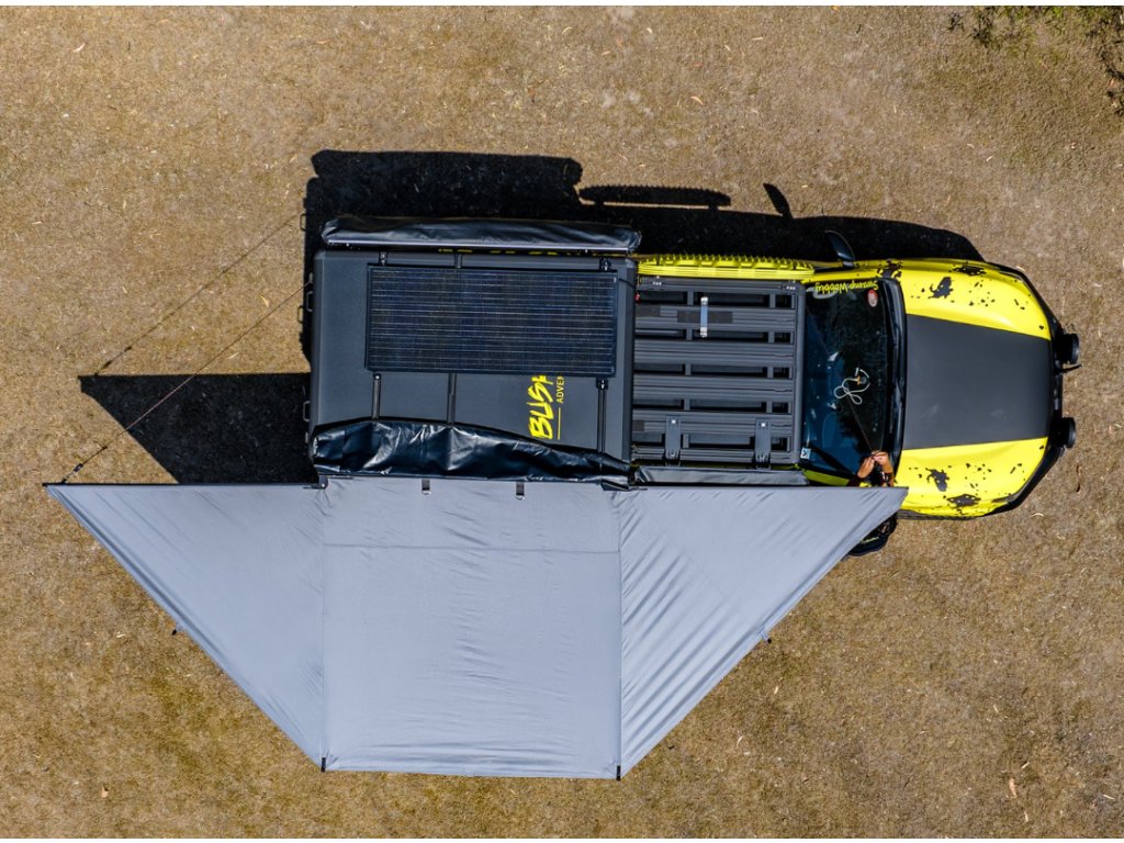 Bushwakka Extreme 180 je samonosná 180° markýza, která kombinuje pevnou hliníkovou konstrukci ENDO, voděodolnou UV50+ polyesterovou tkaninu a chytré designové prvky, díky nimž poskytuje spolehlivou ochranu před sluncem i deštěm. Ideální pro dobrodruhy, kteří chtějí odolné a kompaktní řešení pro svůj off-road nebo kempingový setup.