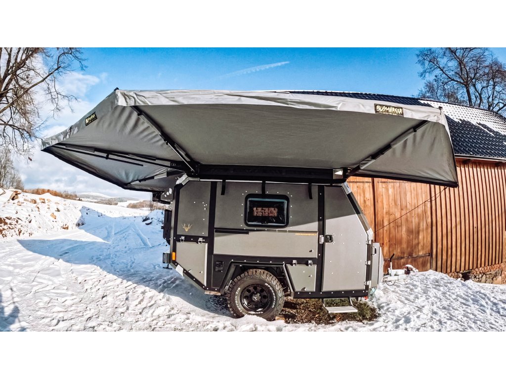 Bushwakka Extreme Darkness je prémiová 270° samonosná markýza, která spojuje odolnost, funkčnost a maximální krytí. Díky robustní hliníkové ENDO konstrukci a UV50+ voděodolnému polyesteru nabízí extrémní stabilitu a odolnost, a to i v těch nejnáročnějších podmínkách. S rozšířeným krycím prostorem 12 m² a vestavěným stmívatelným LED osvětlením je ideální pro každého, kdo hledá nejvyšší úroveň ochrany a komfortu na cestách.