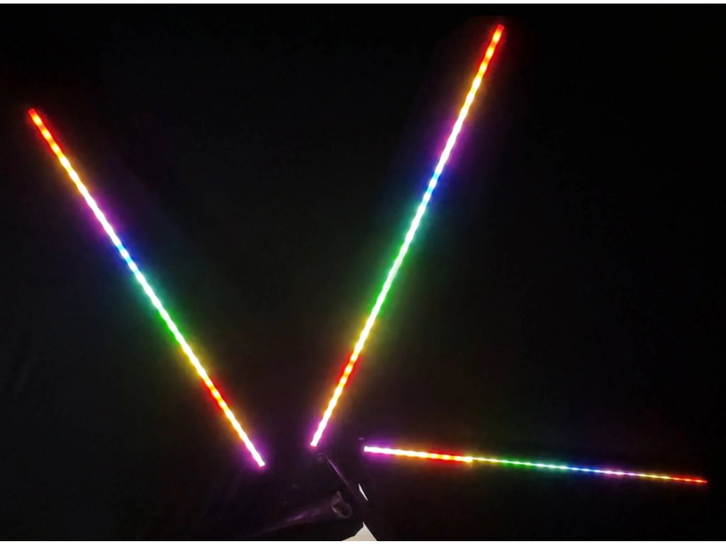 - Osvětlení: 4 stmívatelná LED světla umístěná na ramenech (5m kabel s napájecím konektorem)