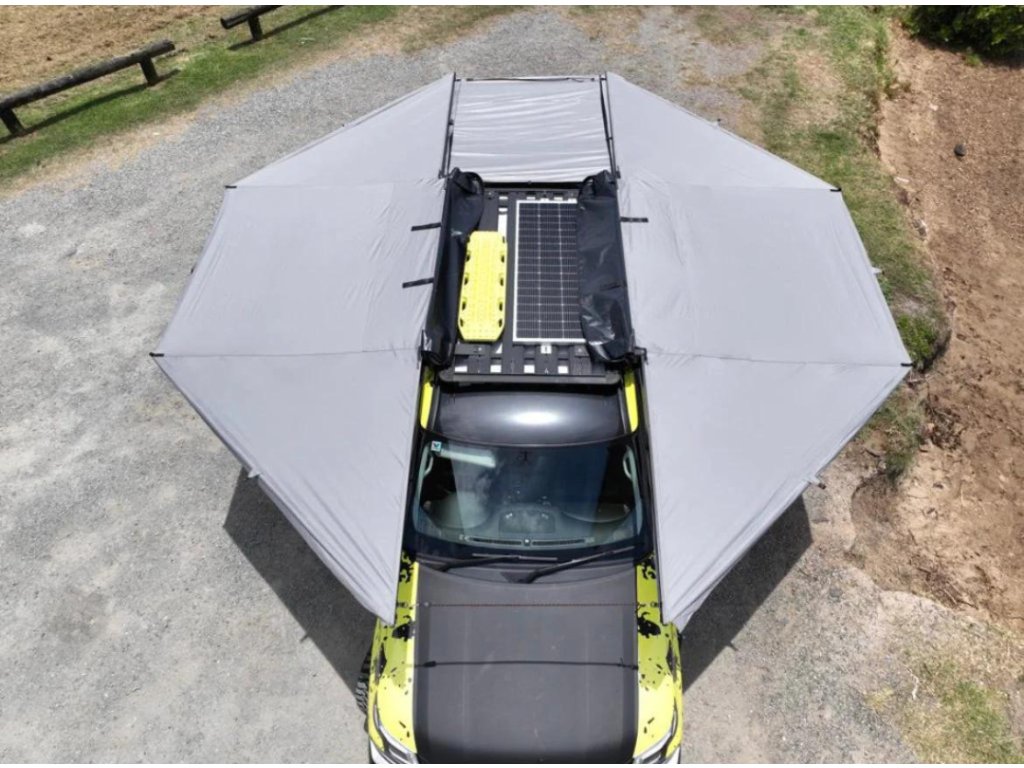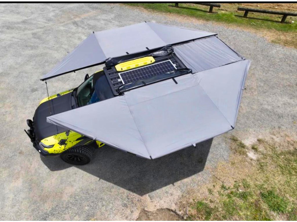 Bushwakka Extreme 360 Pro Black je samonosná 360° markýza, která poskytuje plné kruhové krytí a maximální ochranu před sluncem, deštěm i větrem. Díky robustnímu hliníkovému ENDO rámu, UV50+ voděodolné polyesterové tkanině a pevné konstrukci je připravena odolat i těm nejnáročnějším podmínkám. Je ideální volbou pro dobrodruhy, kteří hledají nejvyšší úroveň komfortu a praktičnosti na cestách.