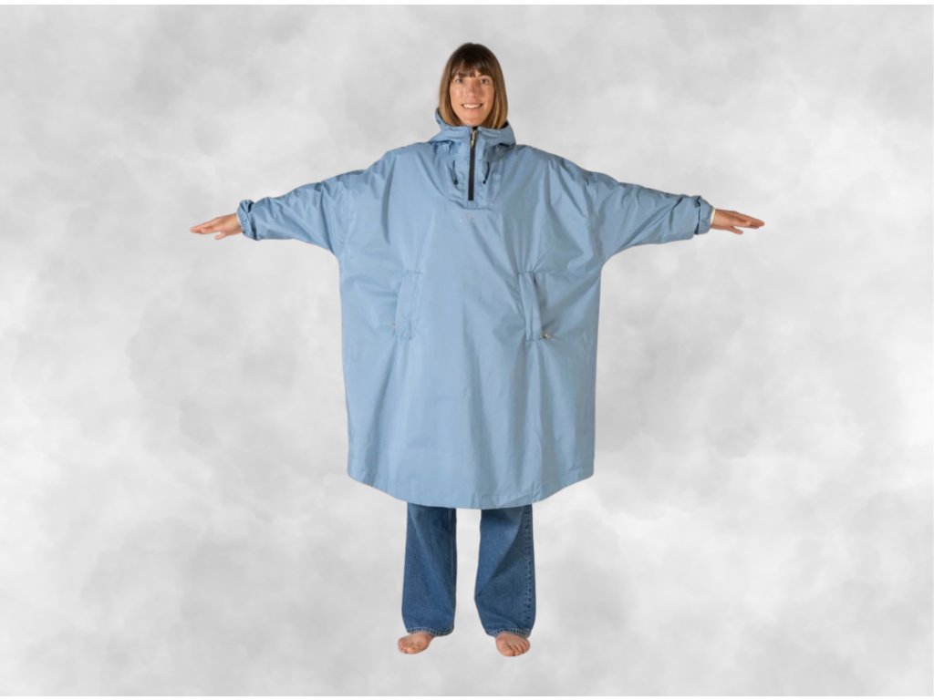 Rozměry sbaleného ponča: přibližně 20 × 15 × 10 cm – perfektní pro minimalistické balení.