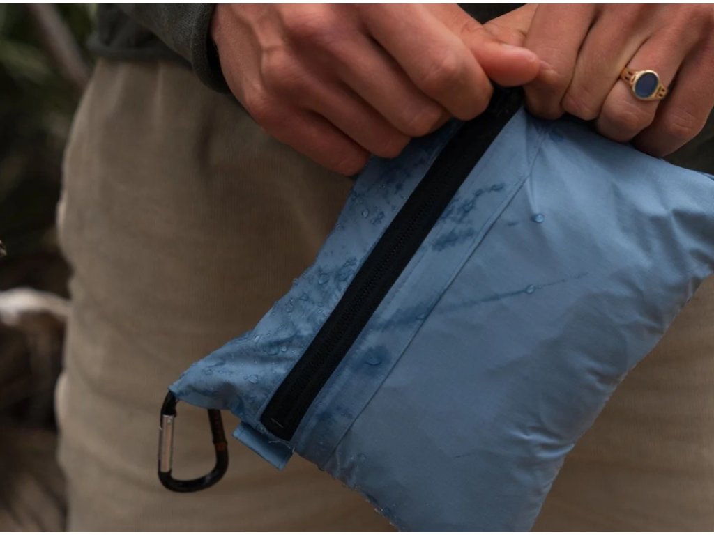 ✔ Kompaktní skladnost: pončo se sbalí do integrované kapsy, kterou máte vždy po ruce – ideální do batohu, tašky nebo auta.